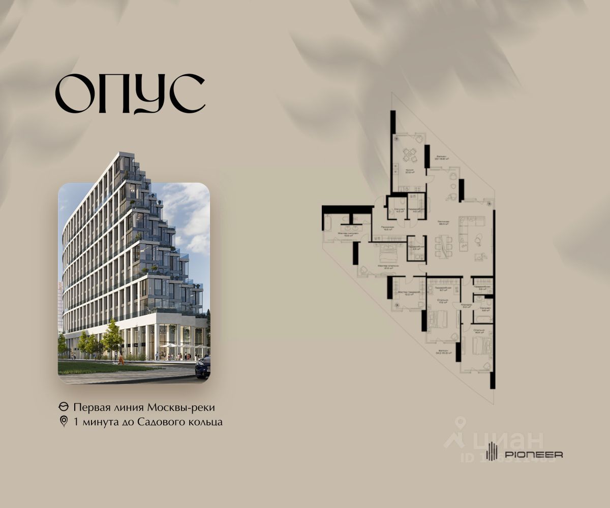 Прямая продажа от застройщика! Продаётся 3-к квартира общей площадью 234.6 кв. м. на 3-м этаже 11 этажного дома. Клубный дом OPUS - современный шедевр архитектуры от компании PIONEER, трансформирующий пространство, меняющий привычный ход вещей. Близость Москвы-реки определила его исключительную форму, вдохновлённую стихией воды. Уникальный и единственный в своём роде OPUS создаёт ощущение преображения, деликатно взаимодействуя с городской тканью. Продуманная территория с парковой атмосферой позволяет находиться в уединении в самом центре города, именно эти исключительные характеристики делают OPUS особенным. Площадь однокомнатной квартиры здесь превышает 50 квадратных метров, а отдельные трёхкомнатные решения восхищают 266-метровым простором и видами на реку. Уникальные квартиры с 8 балконами на разные стороны света, не менее эффектные решения - кабинеты и гардеробные с отдельными балконами, а ванные комнаты с панорамными окнами и собственным балконом. OPUS располагается в историческом месте с видом на Крутицкое подворье и Симоновский вал. Совсем рядом легендарное Замоскворечье - район, сохранивший камерную атмосферу старой Москвы. Локация уникальна также тем, что новые современные объекты будут соседствовать здесь с культовыми объектами культурного и исторического наследия города. За 22 года на рынке недвижимости компания PIONEER реализовала более 30 проектов. Сегодня PIONEER - девелопер премиальной недвижимости с 4 проектами класса премиум и deluxe. Продажа от застройщика. Покупка доступна в рассрочку и ипотеку. Звоните, и мы с удовольствием расскажем все подробности о проекте и условиях покупки.