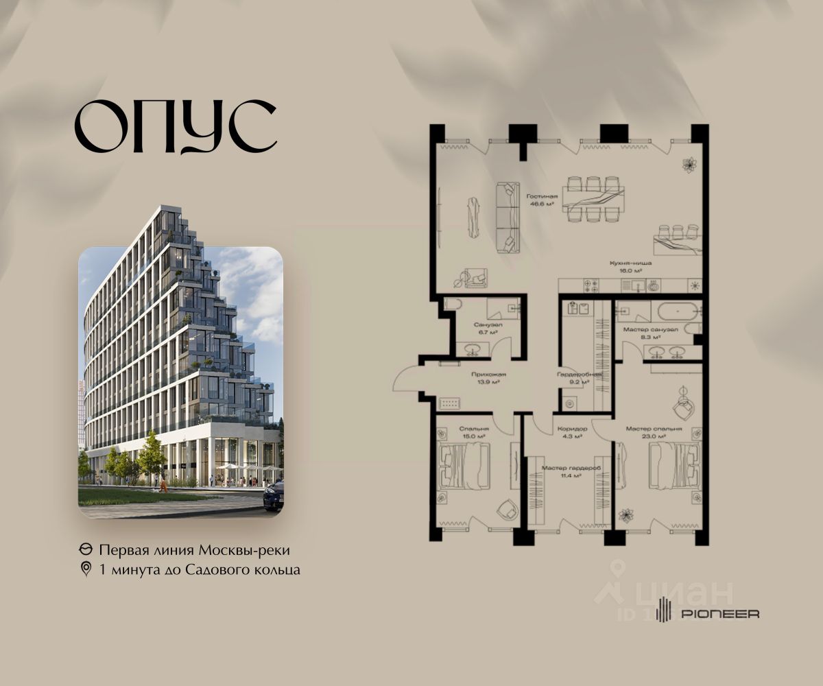 Прямая продажа от застройщика! Продаётся 2-к квартира общей площадью 154.4 кв. м. на 8-м этаже 11 этажного дома. Клубный дом ОПУС - современный шедевр архитектуры от компании PIONEER, трансформирующий пространство, меняющий привычный ход вещей. Близость Москвы-реки определила его исключительную форму, вдохновлённую стихией воды. Уникальный и единственный в своём роде ОПУС создаёт ощущение преображения, деликатно взаимодействуя с городской тканью. Продуманная территория с парковой атмосферой позволяет находиться в уединении в самом центре города, именно эти исключительные характеристики делают ОПУС особенным. Площадь однокомнатной квартиры здесь превышает 50 квадратных метров, а отдельные трёхкомнатные решения восхищают 266-метровым простором и видами на реку. Уникальные квартиры с 8 балконами на разные стороны света, не менее эффектные решения - кабинеты и гардеробные с отдельными балконами, а ванные комнаты с панорамными окнами и собственным балконом. ОПУС располагается в историческом месте с видом на Крутицкое подворье и Симоновский вал. Совсем рядом легендарное Замоскворечье - район, сохранивший камерную атмосферу старой Москвы. Локация уникальна также тем, что новые современные объекты будут соседствовать здесь с культовыми объектами культурного и исторического наследия города. За 22 года на рынке недвижимости компания PIONEER реализовала более 30 проектов. Сегодня PIONEER - девелопер премиальной недвижимости с 4 проектами класса премиум и deluxe. Продажа от застройщика. Покупка доступна в рассрочку и ипотеку. Звоните, и мы с удовольствием расскажем все подробности о проекте и условиях покупки.