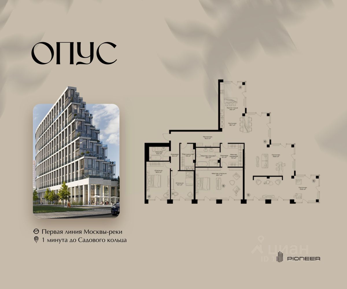 Прямая продажа от застройщика! Продаётся 3-к квартира общей площадью 241.1 кв. м. на 6-м этаже 11 этажного дома. Клубный дом OPUS - современный шедевр архитектуры от компании PIONEER, трансформирующий пространство, меняющий привычный ход вещей. Близость Москвы-реки определила его исключительную форму, вдохновлённую стихией воды. Уникальный и единственный в своём роде OPUS создаёт ощущение преображения, деликатно взаимодействуя с городской тканью. Продуманная территория с парковой атмосферой позволяет находиться в уединении в самом центре города, именно эти исключительные характеристики делают OPUS особенным. Площадь однокомнатной квартиры здесь превышает 50 квадратных метров, а отдельные трёхкомнатные решения восхищают 266-метровым простором и видами на реку. Уникальные квартиры с 8 балконами на разные стороны света, не менее эффектные решения - кабинеты и гардеробные с отдельными балконами, а ванные комнаты с панорамными окнами и собственным балконом. OPUS располагается в историческом месте с видом на Крутицкое подворье и Симоновский вал. Совсем рядом легендарное Замоскворечье - район, сохранивший камерную атмосферу старой Москвы. Локация уникальна также тем, что новые современные объекты будут соседствовать здесь с культовыми объектами культурного и исторического наследия города. За 22 года на рынке недвижимости компания PIONEER реализовала более 30 проектов. Сегодня PIONEER - девелопер премиальной недвижимости с 4 проектами класса премиум и deluxe. Продажа от застройщика. Покупка доступна в рассрочку и ипотеку. Звоните, и мы с удовольствием расскажем все подробности о проекте и условиях покупки.