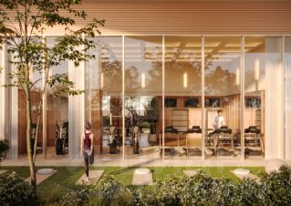 Концепция благоустройства Springs, разработанная студией Wowhaus, воплощает идею взаимного проникновения парка и озеленения внутренней территории: естественная растительность, дополненная акцентами из цветников, плавно вступает во двор. В сочетании с бионической архитектурой дом является органичным продолжением природного ландшафта парка.
