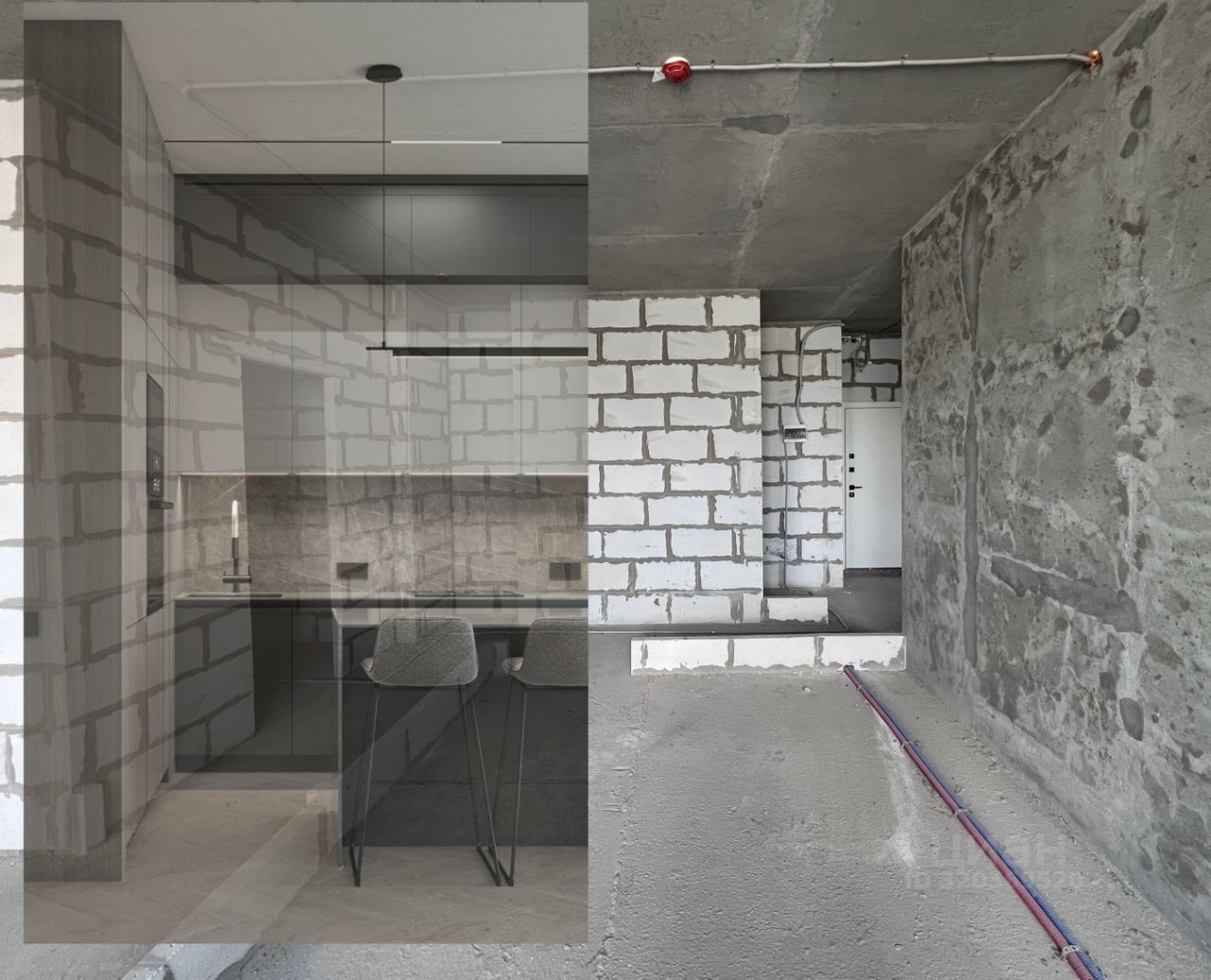 Апартаменты без отделки, что даёт возможность воплотить самые смелые дизайнерские решения и создать пространство по своему вкусу.