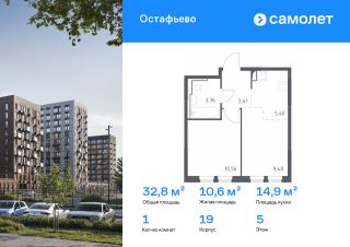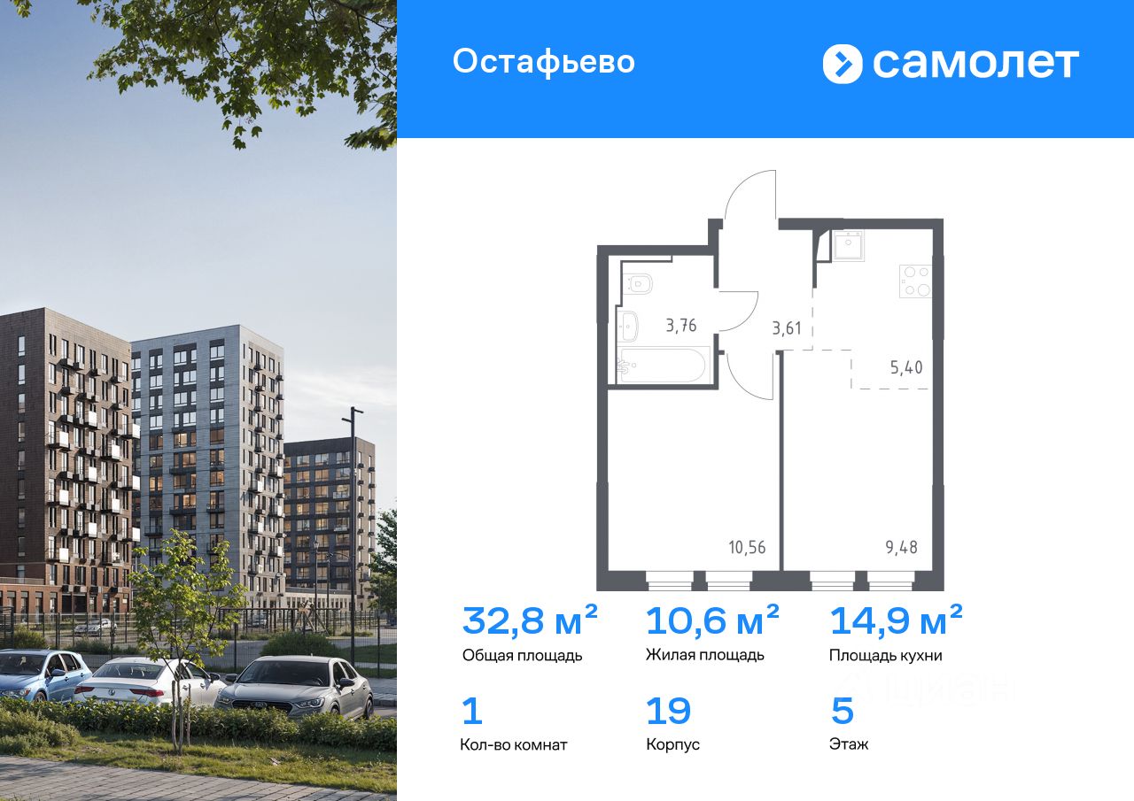 Предлагается 1-комнатная квартира комфорт-класса 32,81 кв.м в корпусе 19 на 5 этаже, в ЖК "Остафьево"