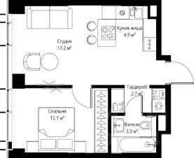 В продаже 1-комнатная квартира площадью 40.20 м² с предчистовой отделкой на 8 этаже 43 этажного дома в корпусе Сильвер.