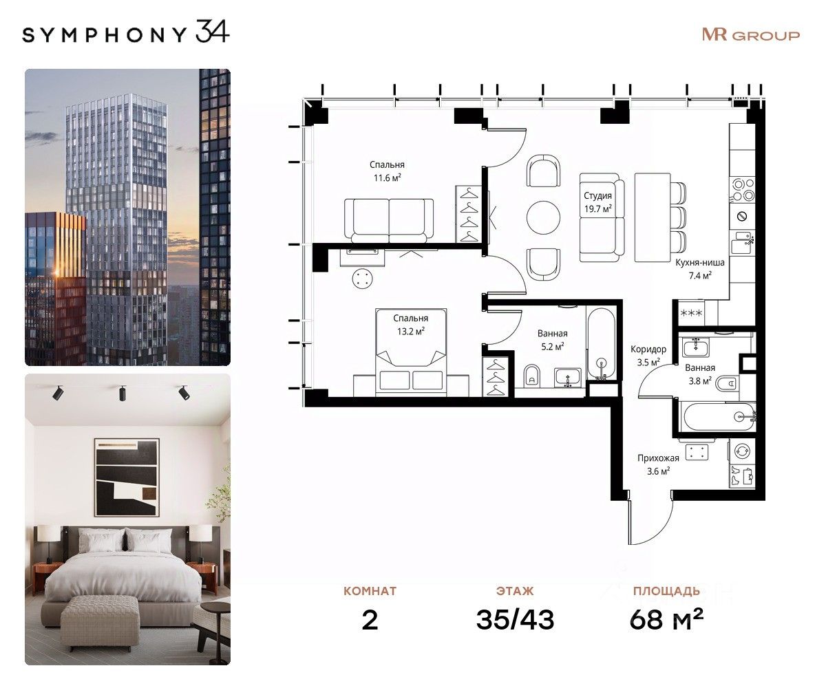 ЖК Симфония 34 - концептуально новый жилой комплекс премиум-класса с подземной парковкой, состоит из четырех башен высотой 36 - 54 этажа.