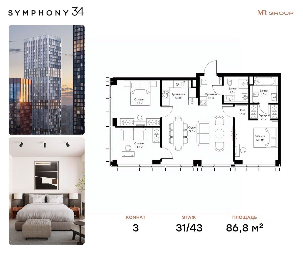 ЖК Симфония 34 - концептуально новый жилой комплекс премиум-класса с подземной парковкой, состоит из четырех башен высотой 36 - 54 этажа.