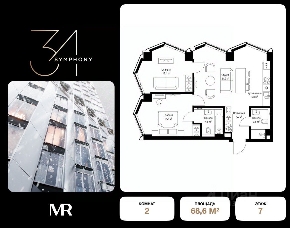 ЖК Симфония 34 - концептуально новый жилой комплекс премиум-класса с подземной парковкой, состоит из четырех башен высотой 36 - 54 этажа.