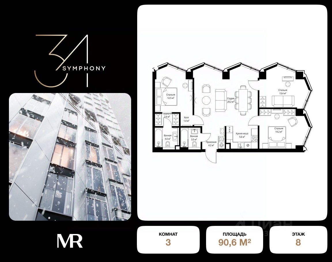 ЖК Симфония 34 - концептуально новый жилой комплекс премиум-класса с подземной парковкой, состоит из четырех башен высотой 36 - 54 этажа.