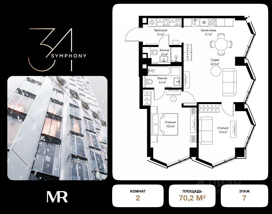 ЖК Симфония 34 - концептуально новый жилой комплекс премиум-класса с подземной парковкой, состоит из четырех башен высотой 36 - 54 этажа.