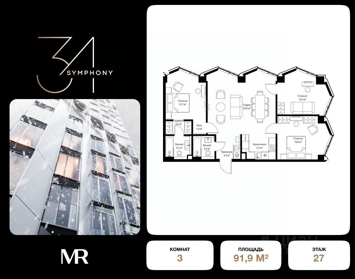 ЖК Симфония 34 - концептуально новый жилой комплекс премиум-класса с подземной парковкой, состоит из четырех башен высотой 36 - 54 этажа.