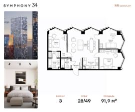 ЖК Симфония 34 - концептуально новый жилой комплекс премиум-класса с подземной парковкой, состоит из четырех башен высотой 36 - 54 этажа.
