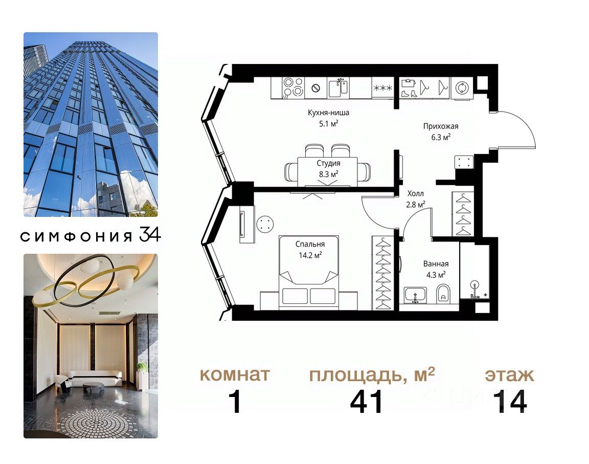 ЖК Симфония 34 - концептуально новый жилой комплекс премиум-класса с подземной парковкой, состоит из четырех башен высотой 36 - 54 этажа.