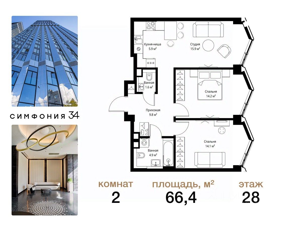ЖК Симфония 34 - концептуально новый жилой комплекс премиум-класса с подземной парковкой, состоит из четырех башен высотой 36 - 54 этажа.
