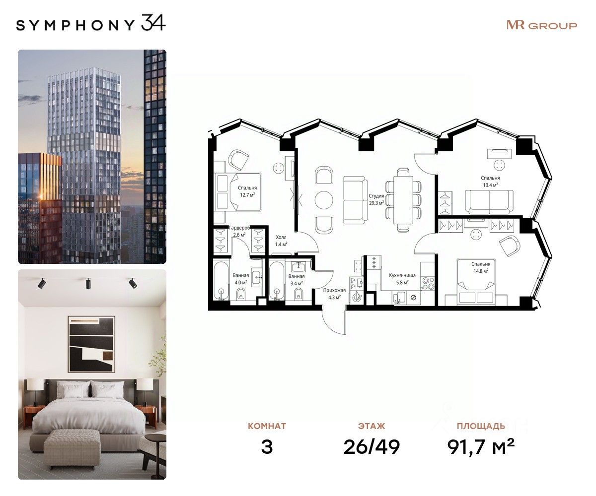 ЖК Симфония 34 - концептуально новый жилой комплекс премиум-класса с подземной парковкой, состоит из четырех башен высотой 36 - 54 этажа.