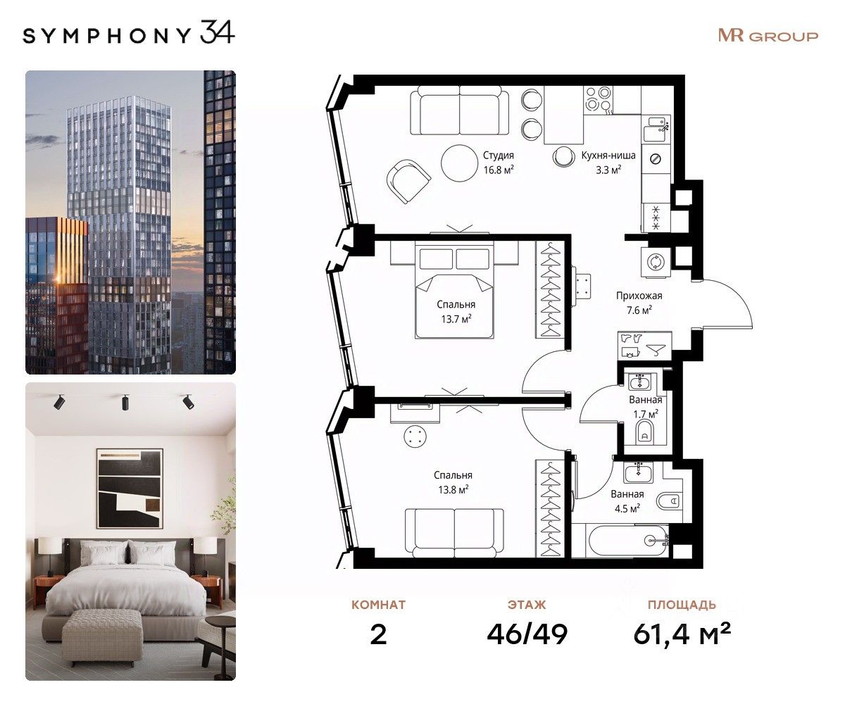 ЖК Симфония 34 - концептуально новый жилой комплекс премиум-класса с подземной парковкой, состоит из четырех башен высотой 36 - 54 этажа.