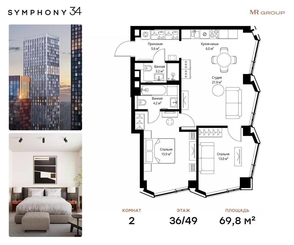ЖК Симфония 34 - концептуально новый жилой комплекс премиум-класса с подземной парковкой, состоит из четырех башен высотой 36 - 54 этажа.