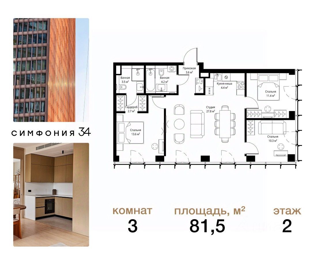 ЖК Симфония 34 - концептуально новый жилой комплекс премиум-класса с подземной парковкой, состоит из четырех башен высотой 36 - 54 этажа.