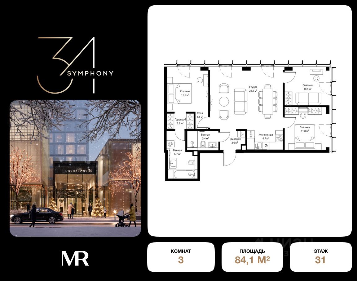 ЖК Симфония 34 - концептуально новый жилой комплекс премиум-класса с подземной парковкой, состоит из четырех башен высотой 36 - 54 этажа.