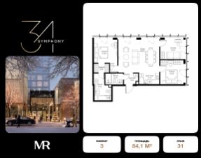 В продаже 3-комнатная квартира площадью 84.10 м² с чистовой отделкой на 31 этаже 36 этажного дома в корпусе Сиена.