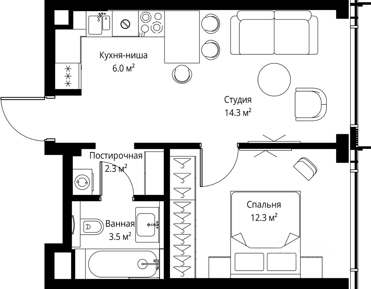 В продаже 1-комнатная квартира площадью 38.40 м² с чистовой отделкой на 32 этаже 36 этажного дома в корпусе Сиена.