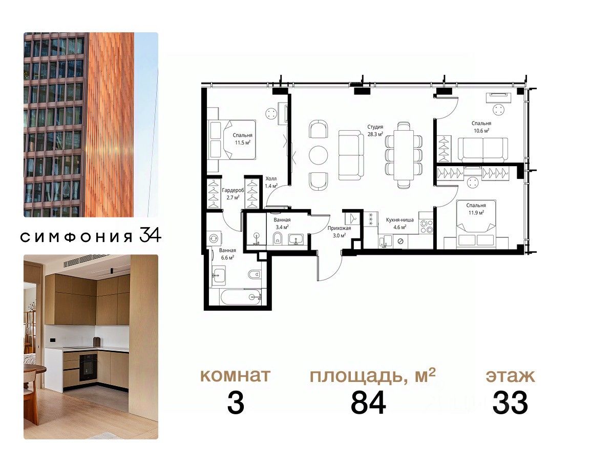ЖК Симфония 34 - концептуально новый жилой комплекс премиум-класса с подземной парковкой, состоит из четырех башен высотой 36 - 54 этажа.