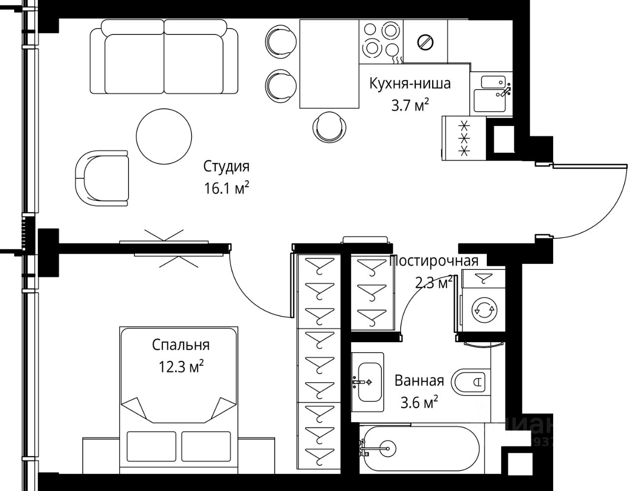 В продаже 1-комнатная квартира площадью 38 м² с чистовой отделкой на 36 этаже 36 этажного дома в корпусе Сиена.