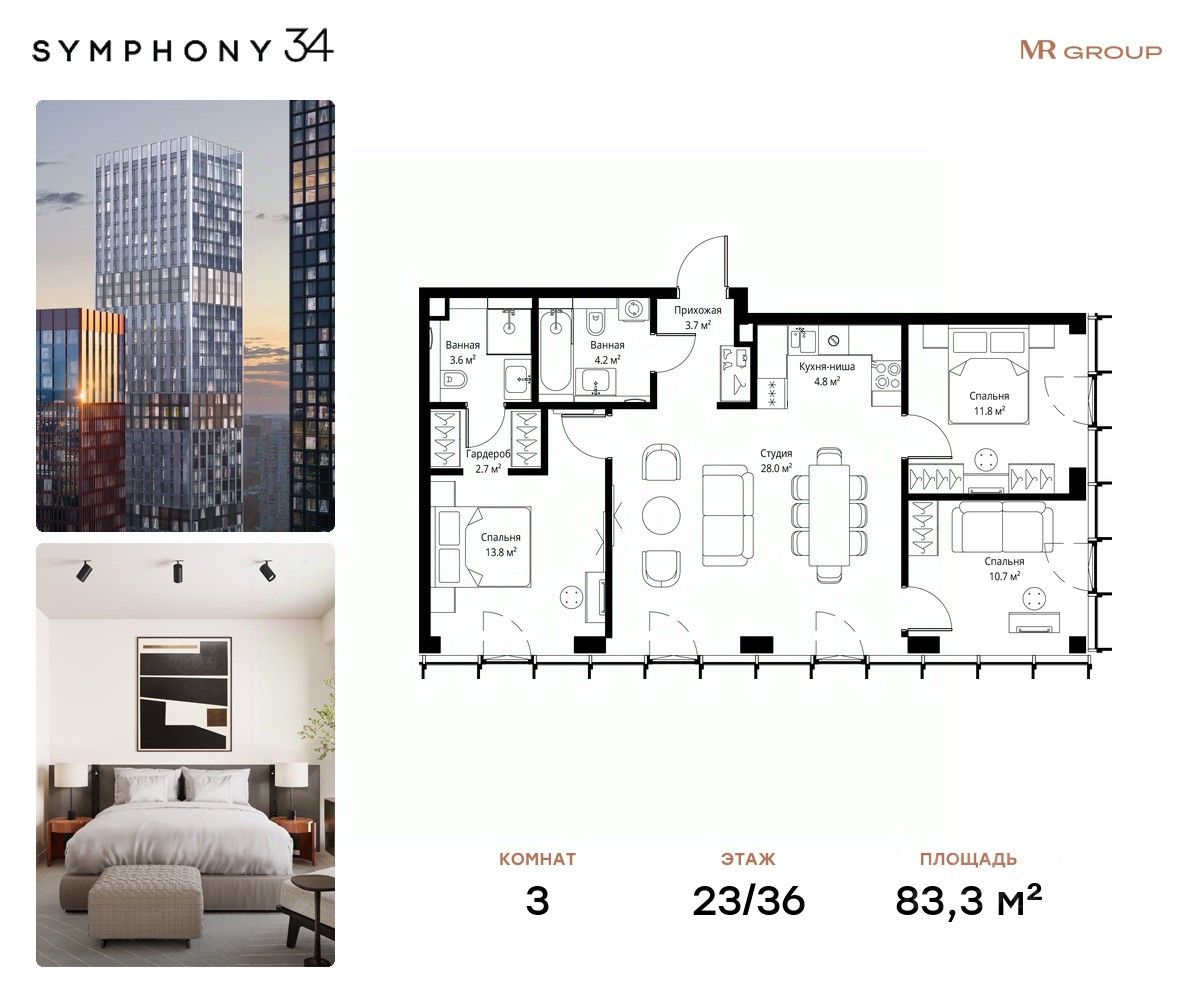 ЖК Симфония 34 - концептуально новый жилой комплекс премиум-класса с подземной парковкой, состоит из четырех башен высотой 36 - 54 этажа.