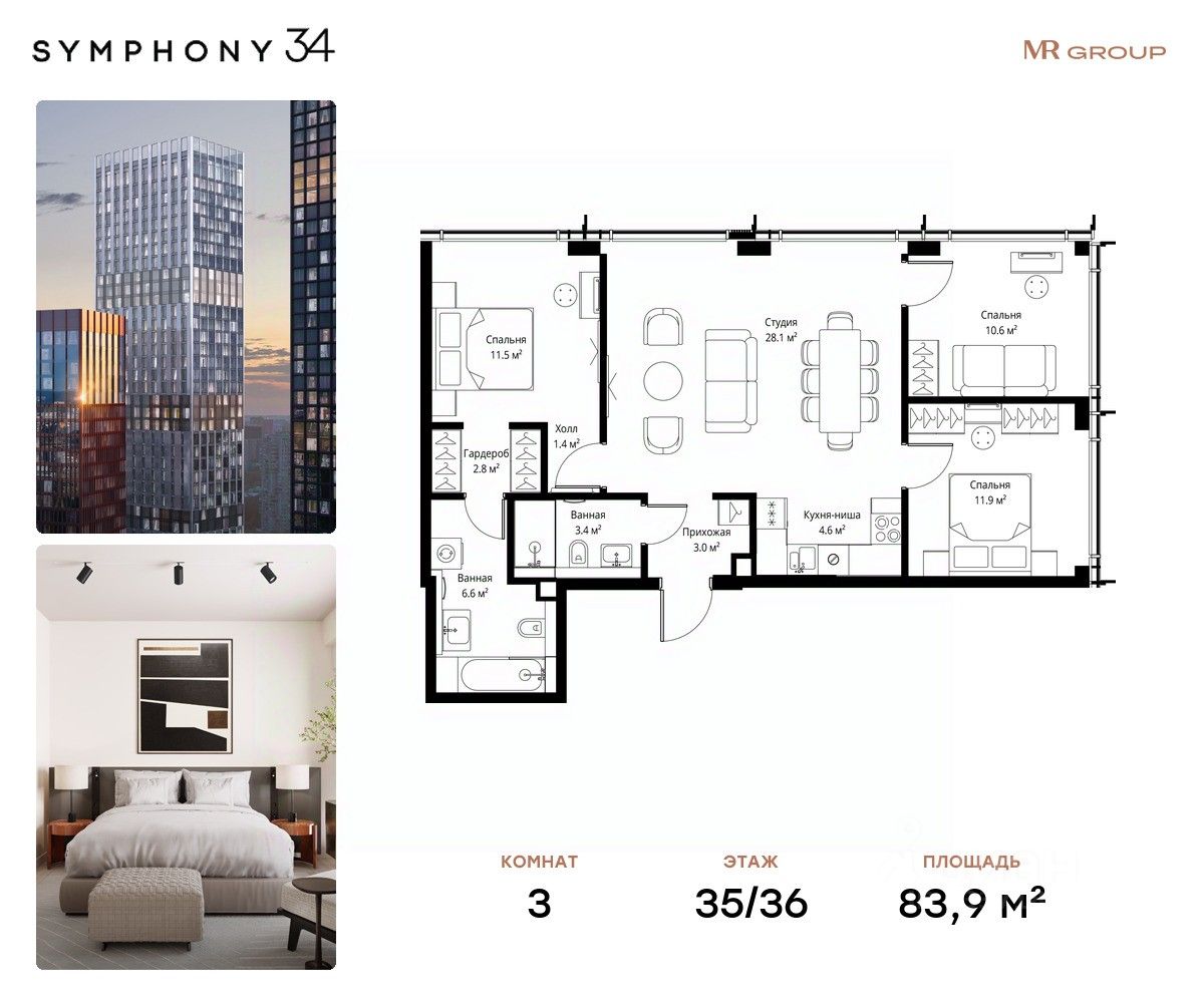ЖК Симфония 34 - концептуально новый жилой комплекс премиум-класса с подземной парковкой, состоит из четырех башен высотой 36 - 54 этажа.