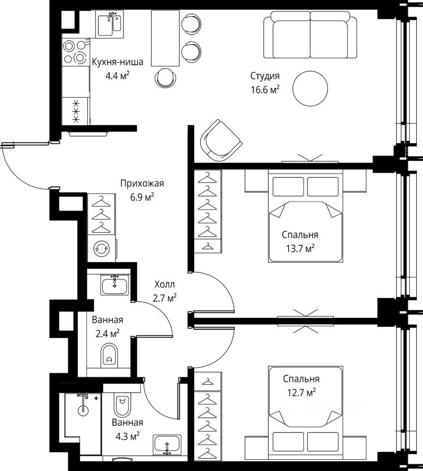 Квартиры сдаются с базовой (предчистовой) отделкой MR BASE или дизайнерской чистовой отделкой MR READY.