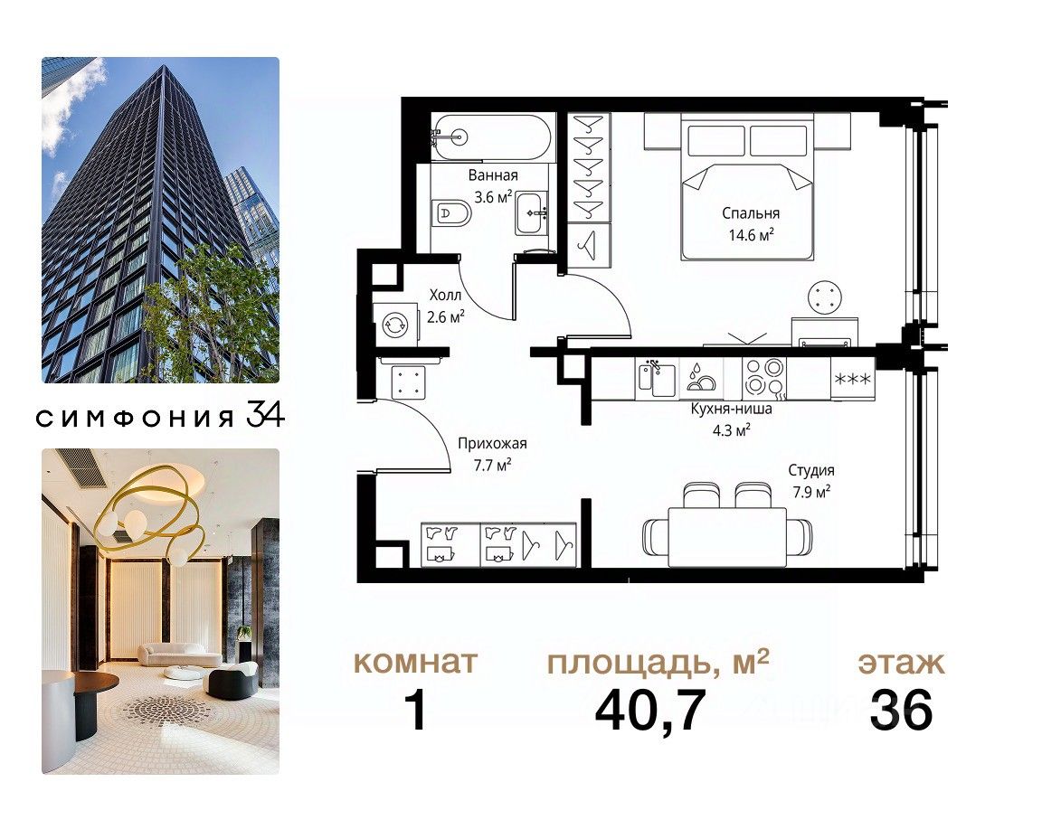 ЖК Симфония 34 - концептуально новый жилой комплекс премиум-класса с подземной парковкой, состоит из четырех башен высотой 36 - 54 этажа.