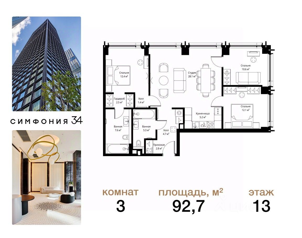 ЖК Симфония 34 - концептуально новый жилой комплекс премиум-класса с подземной парковкой, состоит из четырех башен высотой 36 - 54 этажа.