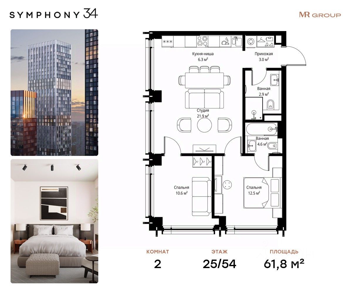 ЖК Симфония 34 - концептуально новый жилой комплекс премиум-класса с подземной парковкой, состоит из четырех башен высотой 36 - 54 этажа.