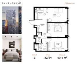 ЖК Симфония 34 - концептуально новый жилой комплекс премиум-класса с подземной парковкой, состоит из четырех башен высотой 36 - 54 этажа.