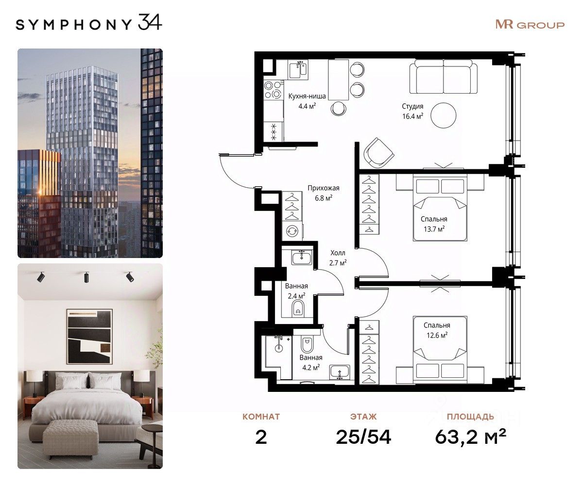 ЖК Симфония 34 - концептуально новый жилой комплекс премиум-класса с подземной парковкой, состоит из четырех башен высотой 36 - 54 этажа.