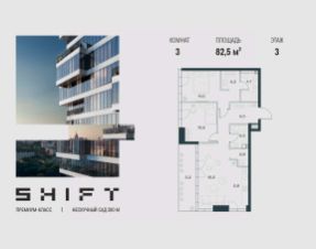 3-к квартира в премиальном комплексе SHIFT на 3-м этаже в 18 этажном здании. Общая площадь 82.5 кв. м.