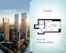 Продаётся студия общей площадью 23.90 м² с предчистовой отделкой в ЖК VEER на 12-м этаже 59 этажного дома.