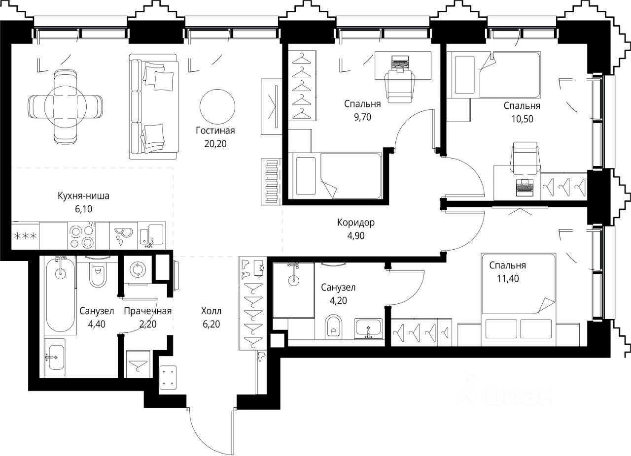 В ЖК SET продается 3-комнатная квартира площадью 79.80 м², расположенная в корпусе 2, на 20 этаже 59 этажного дома.