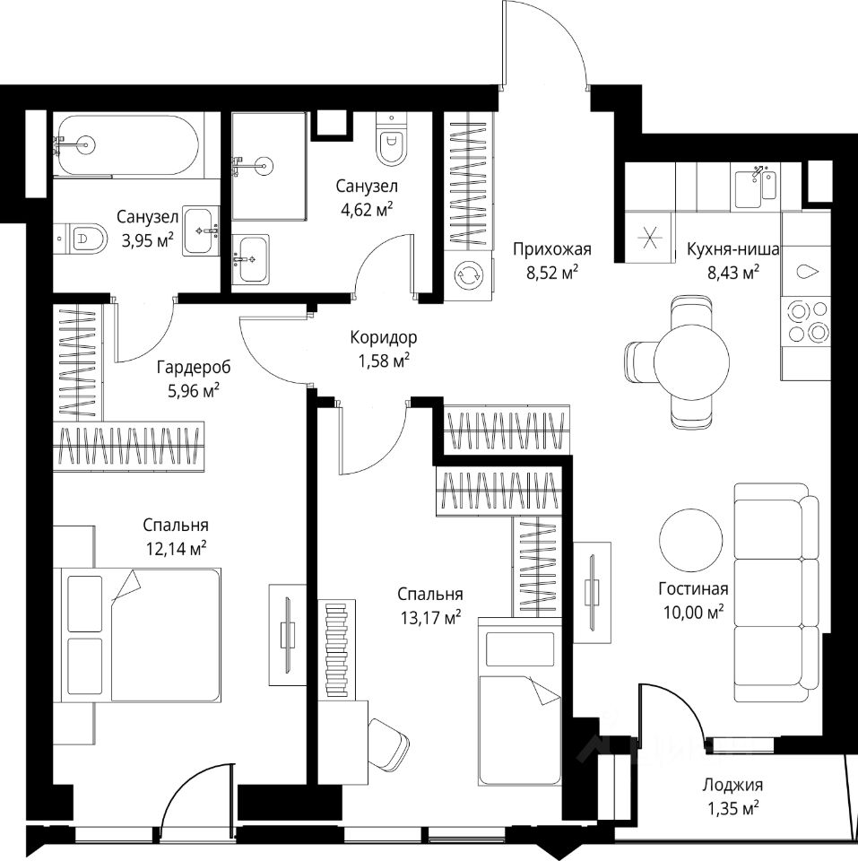 В продаже квартира площадью 69.72 м² с предчистовой отделкой на 2 этаже 55 этажного дома. Квартира расположена в корпусе Anna.