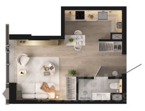 В продаже квартира площадью 27.05 м² с предчистовой отделкой на 43 этаже 55 этажного дома. Квартира расположена в корпусе Anna.