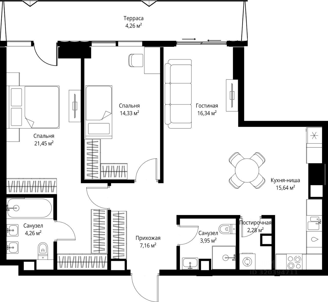 В продаже квартира площадью 89.67 м² без отделки на 6 этаже 55 этажного дома. Квартира расположена в корпусе Anna.