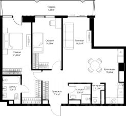 В продаже квартира площадью 89.33 м² без отделки на 3 этаже 55 этажного дома. Квартира расположена в корпусе Anna.