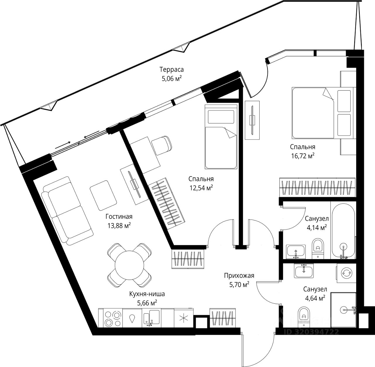 В продаже квартира площадью 68.34 м² без отделки на 3 этаже 55 этажного дома. Квартира расположена в корпусе Anna.