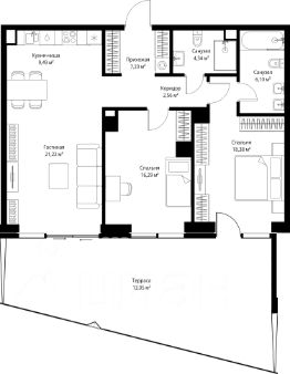 В продаже квартира площадью 98.66 м² без отделки на 3 этаже 55 этажного дома. Квартира расположена в корпусе Anna.