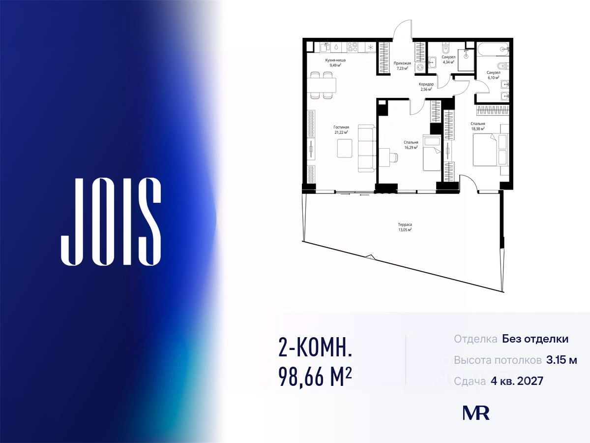 JOIS это премиальный жилой комплекс от девелопера MR в районе Хорошёво-Мнёвники. Он включает несколько эффектных небоскрёбов высотой 47-56 этажей, эксклюзивные форматы квартир с панорамным остеклением, подземный двухуровневый паркинг на 239 м/м, собственную приватную инфраструктуру, закрытый ландшафтный парк 2,3 Га с функциональным зонированием и охраняемой территорией. Над проектом работали лучшие команды международных агентств с многолетним опытом: Genpro, S&P, iLight International и другие.