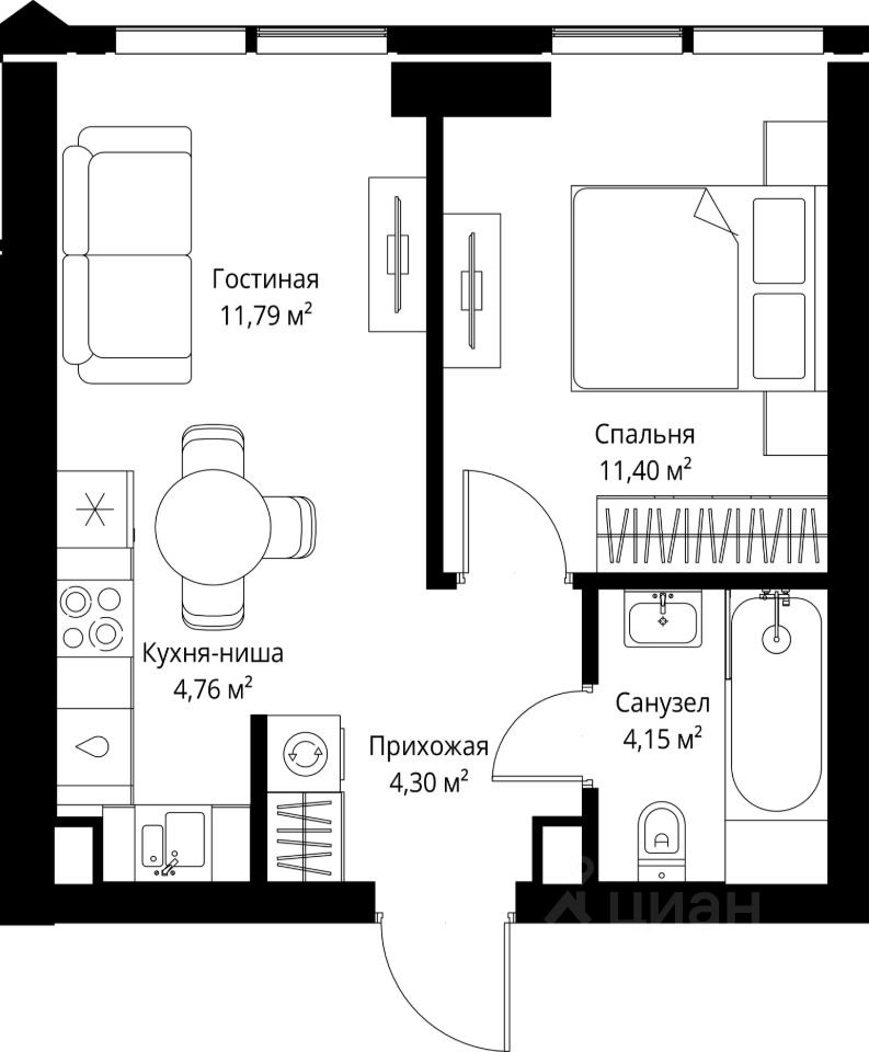 - гостиная с мини-кухней;