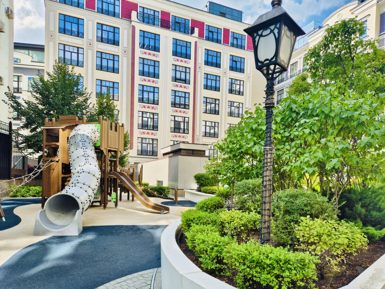 Из окон открывается вид на тихий зелёный сквер Мерзляковского переулка.