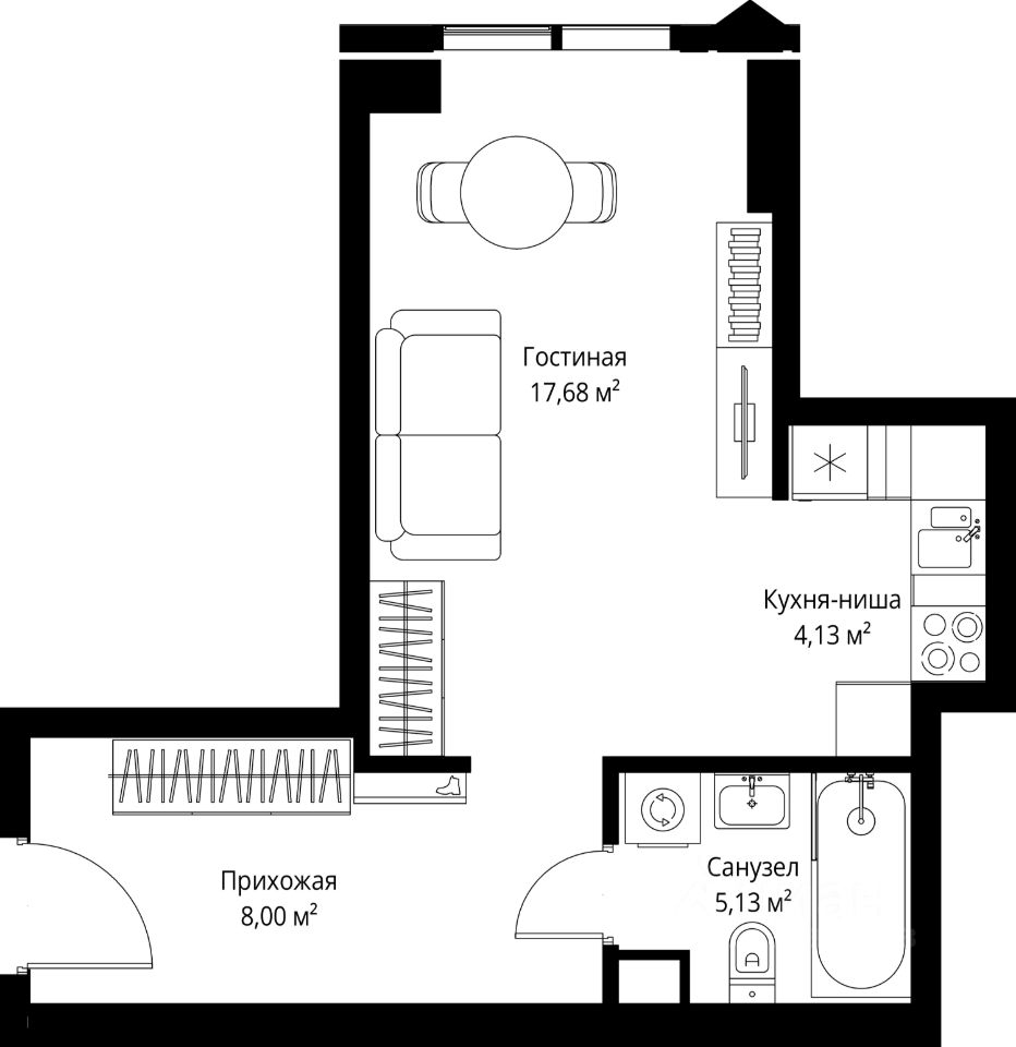 В продаже квартира площадью 34.94 м² без отделки на 4 этаже 46 этажного дома. Квартира расположена в корпусе Leo.