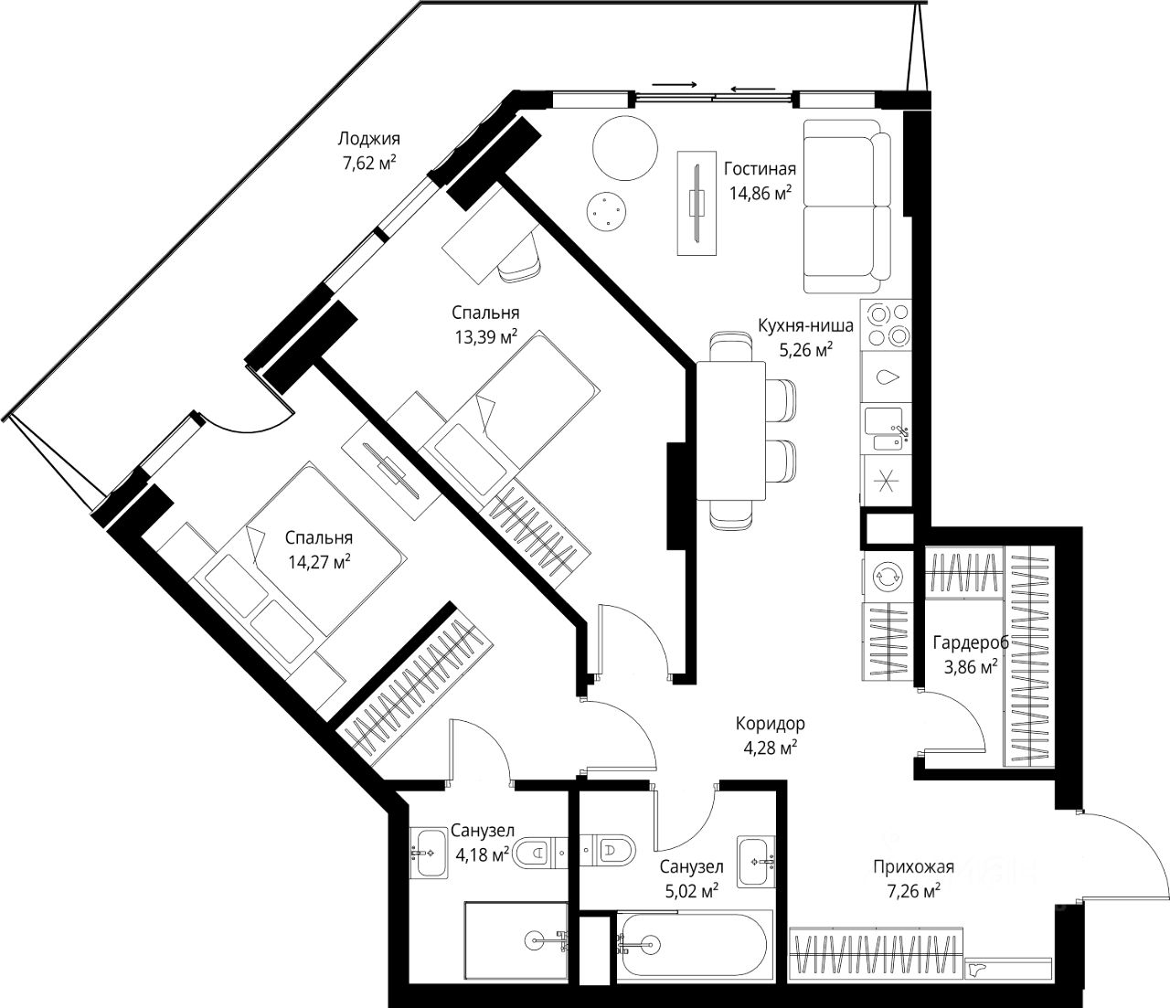 В продаже квартира площадью 80 м² без отделки на 8 этаже 46 этажного дома. Квартира расположена в корпусе Leo.