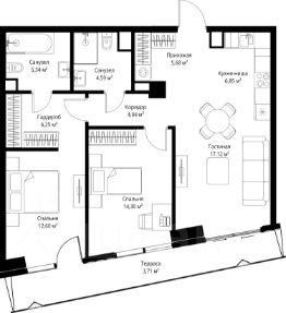 В продаже квартира площадью 80.48 м² без отделки на 3 этаже 46 этажного дома. Квартира расположена в корпусе Leo.