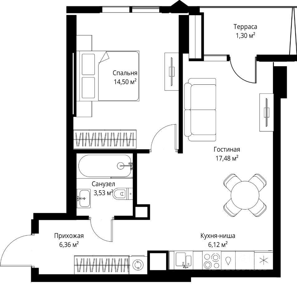 В продаже квартира площадью 49.29 м² без отделки на 11 этаже 46 этажного дома. Квартира расположена в корпусе Leo.