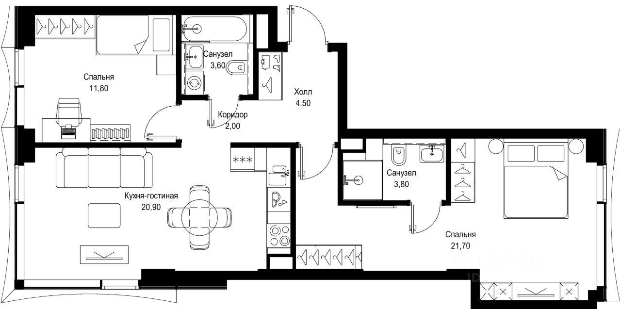 Продается 2-комнатная квартира от застройщика в жилом мультиквартале CITYZEN на 4-м этаже в корпусе #9 урбан-блока VOLNA. Общая площадь лота составляет 68.30 м²